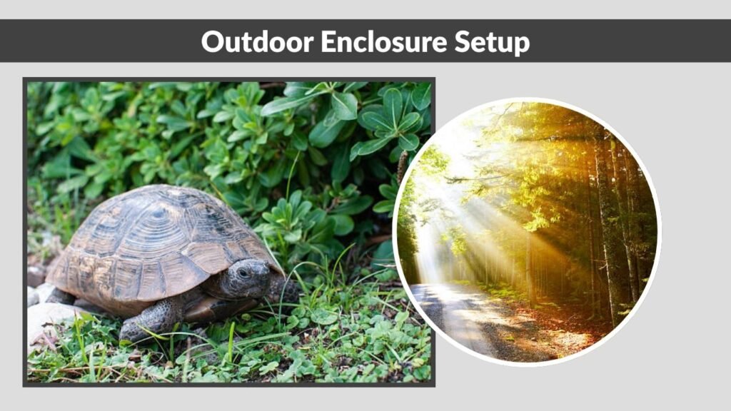 Outdoor housing provides natural sunlight, more space, and a richer environment for the tortoise. It allows for more natural behaviors but requires secure construction and protection from weather and predators.