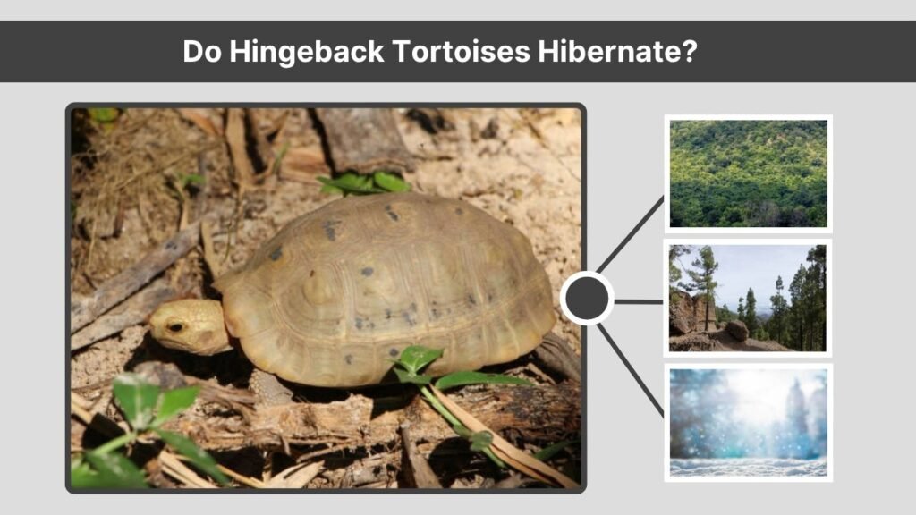 Hingeback tortoises do not truly hibernate like some other reptile species. Because they come from tropical and subtropical regions, they are adapted to relatively stable temperatures throughout the year. However, they may become less active if temperatures drop or humidity levels decrease.
